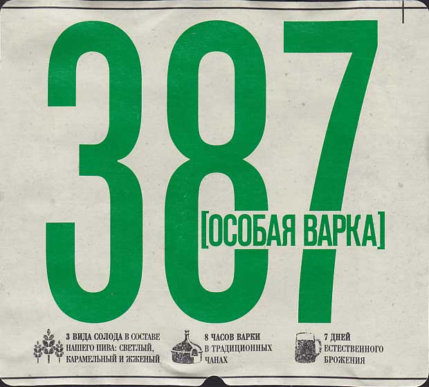 | "387, особая варка", на этикетке появилась вырубка для ориентации этикетки (в коллекцию ;-) Вкус чистый, умеренно полный, едва карамельный. |