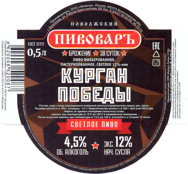 | Волгоград, "Поволжский Пивоваръ", ООО "Живица". Волгоградский пивзавод, за время своего существования в постсоветской России, многократно менял свое название (особенно названия всяческих акционерных обществ), но до сих пор жив и варит пиво. "Курган Победы" - умеренно грязный вкус, заметен привкус размоченного картона, а также мёда. В остальном - чуть солода, хмель не заметен, хотя горчинка грубоватая есть. "Донское казачье" - классические 14% на 4,8% до сих пор выдерживаются и это пиво куда интереснее. Полное, не слишком чистое, но посторонка скрыта. Есть горечь но какая-то тоже не хмелевая, скорее спиртовая. |