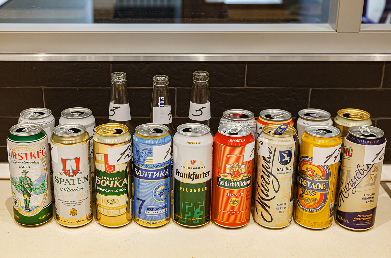 В начале, о двух дегустациях на которых побывал. Первая проходила в школе вина "Энотрия", дегустировали массовое пиво для новой сети "Чижик". Дегустация проходила в слепую, в принципе можно было бы привести здесь мои записи и оценки, а при такой дегустации они наиболее справедливые и достоверные, нет зависимости от названия бренда и места производства, но ограничусь краткими комментариями и приведу фотографии представленных образцов, а также этикеток и банок которые пошли в мою коллекцию пивной атрибутики.