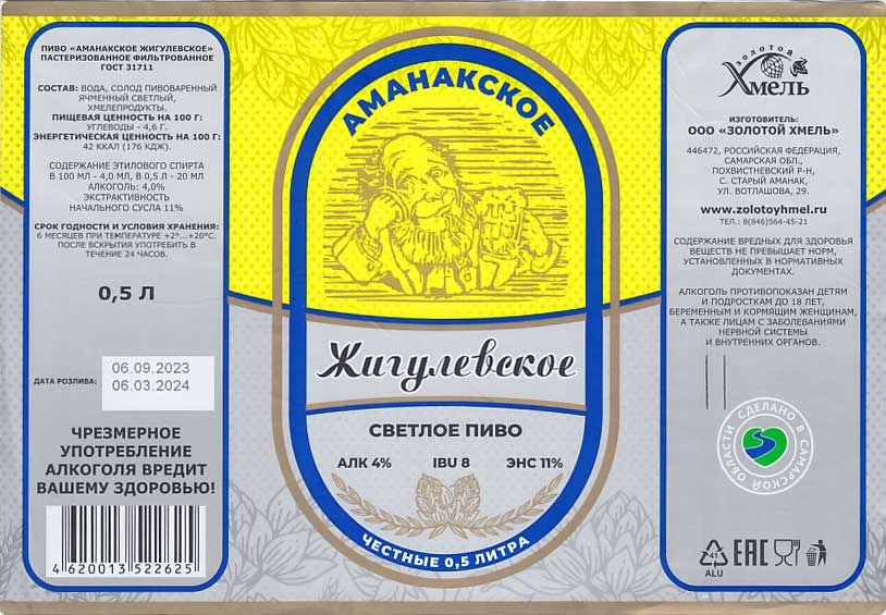 | "Золотой Хмель", село Старый Аманак, Похвистневский район Самарской области. Основан в 2008-м году, с 2013-го года начато производства меда. Начал с комбучи (чайного гриба) - "Бумер, чайный гриб" - это все таки газированный напиток, а не настоящий чайный гриб. Знакомый привкус есть, но нет яркого вкуса и кислотности, но ведь это промышленная версия, а не домашняя - с грибом в трехлитровой банке. Пиво: "Boozer APL Popcorn" - значительное добавление кукурузы (в виде попкорна) вполне ощутимо, а охмелено не так уж сильно. "Boozer APA" - хмель дал аромат и вкус тропических фруктов, охмелено заметно, но не до явной горечи. "Boozer Bread" - темное ржаное пиво, рожь не превалирует, но вполне заметна. Под брендом "Аманакское": "Жигулевское", "Светлое", "Ячменный колос" - 11% лагерки, достаточно чистые, хотя легкая посторонка проскакивает. Охмелены едва, солод тоже не сильный. "Ячменный колос" - потемнее остальных, именно он как раз в стилистике старого советского "Жигулевского". Медовухи: "Классическая" - вкус меда, сбалансировано сладковато. "Лемонграсс", "Вишня" - вкус меда с цитрусами и вишней соответственно. И две томатные медовухи (не томатный гозе, а томатный мед!). "Шершень ля Фам" - слегка заметно что основа медовая, вкус томатов, немного специй и пряных трав. "Хей хоу" - здесь еще добавлено довольно много острого перца и перченость явная, напиток действительно жжется. |