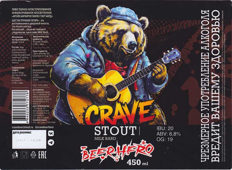 Крейв бирхироу, милк стаут бард |