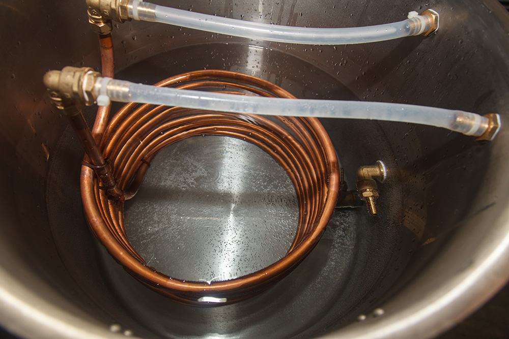 | Для домашнего пивоварения в России настал период полного благоприятствования! Открылись многочисленные магазины ориентированные на домашних пивоваров, в них можно купить домашнее пивоваренное оборудование на любой вкус и кошелек, не говоря уж о всевозможных солодах, хмелях и дрожжах. Регулярно проводятся встречи, дегустации и фестивали домашних пивоваров, а в последнее время, в крафтовых барах стали проводить демонстрационные варки домашнего пива. И вот в это воскресенье, такую варку провел бармен бара "Right Hops", Олег Пивовар. Варка естественно прошла в самом баре "Right Hops", расположенном недалеко от метро "Улица 1905-го года". Оборудование у Олега очень интересное, сделанное им самим, так что остановлюсь на нем подробнее. Собственно основные затраты составили покупки мощной индукционной плиты, двух котлов из нержавейки на 50 л. и комплекта кранов, медных и силиконовых трубок, а также насоса. Что же получилось у Олега? Заторный котел имеет терморубашку, градусник вмонтирован прямо в котел, также в него вмонтирована система фильтрации из медных трубок с прорезями по нижней части. Варочный котел также имеет встроенный термометр, встроенный чиллер из медных трубок (который здесь играет двоякую роль - как для охлаждения, так и для нагрева сусла). Принцип работы пивоварни следующий - в варочном котле нагревается вода, в заторном же котле вода (сначала вода, а потом и сусло) нагревается так - через трубки фильтра заторника вода через кран отбирается насосом, перенаправляется в чиллер погруженный в горячую воду в варочном котле и возвращается обратно в заторный котел уже нагретой. Регулируя температуру воды в варочнике и включая/выключая насос можно регулировать температуру в заторнике, поднимая ее для нужных температурных пауз. При этом, перемешивать сусло не нужно, при работе насоса оно перемешивается автоматически из-за его циркуляции между заторником и варочником. После окончания затирания, сусло некоторое время продолжает гоняться через чиллер обратно в заторник, пока не станет прозрачным после образования фильтрующего слоя из дробины, после этого фильтрованное сусло перенаправляют в промежуточную емкость (для этого используются обычно баки для брожения). Затем из варочника в заторник подается вода для промывки дробины и собирается второе сусло. Собранное фильтрованное сусло переливается обратно в освобожденный варочный котел и кипятится с хмелем. В варочнике есть специальная трубка направленная тангенциально к стенке котла. Ее используются для закручивания сусла после завершения варки (принцип вирпула, чтобы взвеси оседали в центре котла). После варки чиллер подключают к холодной воде и сусло с его помощью охлаждается. Стоит заметить, что краны и трубки используются большого диаметра, а это здорово ускоряет все процессы, особенно фильтрацию. Охлажденное сусло переливается с осадка бруха в баки брожения и туда же задаются дрожжи. Для дробления солода используется распространенная версия солододробилки, правда к ней, через переходник подсоединяется дрель, так что помол солода занимает считанные минуты. Собственно о варимом в этот раз пиве. Варилось бельгийское пшеничное пиво типа "вит". Кроме светлого и янтарного солода использовался пшеничный, добавлялись специи в виде цедры цитрусовых и кориандр. Дрожжи - T-58, хмели к