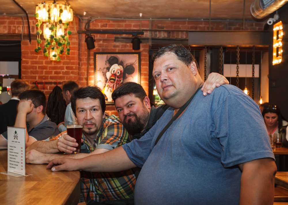 | "Крафтовики" из новенькой "Beer Bros Brewery", презентовали в Bad.Bro.Bar один из своих стартовых сортов - IPA "Mango Mayhem". Про пивоварню и их пиво очень подробно писал в этом отчете, здесь повторюсь, что "Mango Mayhem" - действительно довольно горький ИПА, с ароматом и привкусом тропических фруктов, среди которых можно выделить и манго. Хотя презентации нового пива проходят почти ежедневно, они продолжают вызывать интерес у публики, так что Bad.Bro.Bar был заполнен до отказа (и многие явно пришли именно ради "Beer Bros Brewery"). За краном стоял сам Александр Казьмин, а Александр Перегудов (из "Beer Bros Brewery") вручил Александру Стебакову приз в виде ящика пива за победу в конкурсе фотографий организованном пивоварней. Ну а компанию в питие пива мне составили Александр Голубков, Александр Седов и Александр Строгалев ;-) |