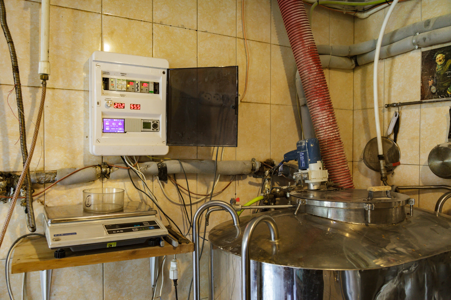 | Крепление вина спиртом довольно распространенная практика и многие сорта крепленого вина вполне себе хороши (особенно выдержанные), из питого мною зарубежного крепленого пива вспомнился израильский "Ha'Dictator Laphroaig" с добавлением виски Laphroaig, хотя и в данном случае - добавлялось больше ради вкуса, чем для повышения крепости. Но почему бы не попробовать сделать именно крепленное пиво? Наше законодательство такое не допускает, но ничто не мешает произвести его для себя, в домашних условиях. Вот с этими идеями, в последний день июля, на пивоварне в Жаворонках состоялась совместная варка пива - пивоварней Lark Craft и Союзом Южно-Московских Пивоваров. Решили сварить пиво близкое к имперскому молочному стауту, часть оставить как есть, а часть крепить пивным спиртом (спиртом полученным путем перегонки пива) - до крепости 14, 16, 18% (само пиво должно выбродить до 8-9%). В итоге сварили сусло плотностью 21%, после добавления лактозы плотность стала 22,5% (лишняя сладость должна сбалансировать алкоголь). Спирт будет добавляться при переливе в бочки, выдерживать надо будет полгода-год (и больше), в этом случае можно ожидать гармонизации вкуса. Несколько слов о пивоварне в Жаворонках. Прошла небольшая модернизация варочного порядка, в заторник и варочник были вварены трубы и с помощью насосов теперь можно будет перемешивать сусло в заторнике (пока перемешивается дрелью) и закручивать сусло в варочнике (получив эффект вирпула). Также фильтрация теперь ведется самотеком, в промежуточную емкость, оттуда перекачивается насосом в варочник, насос включается поплавковым переключателем. |