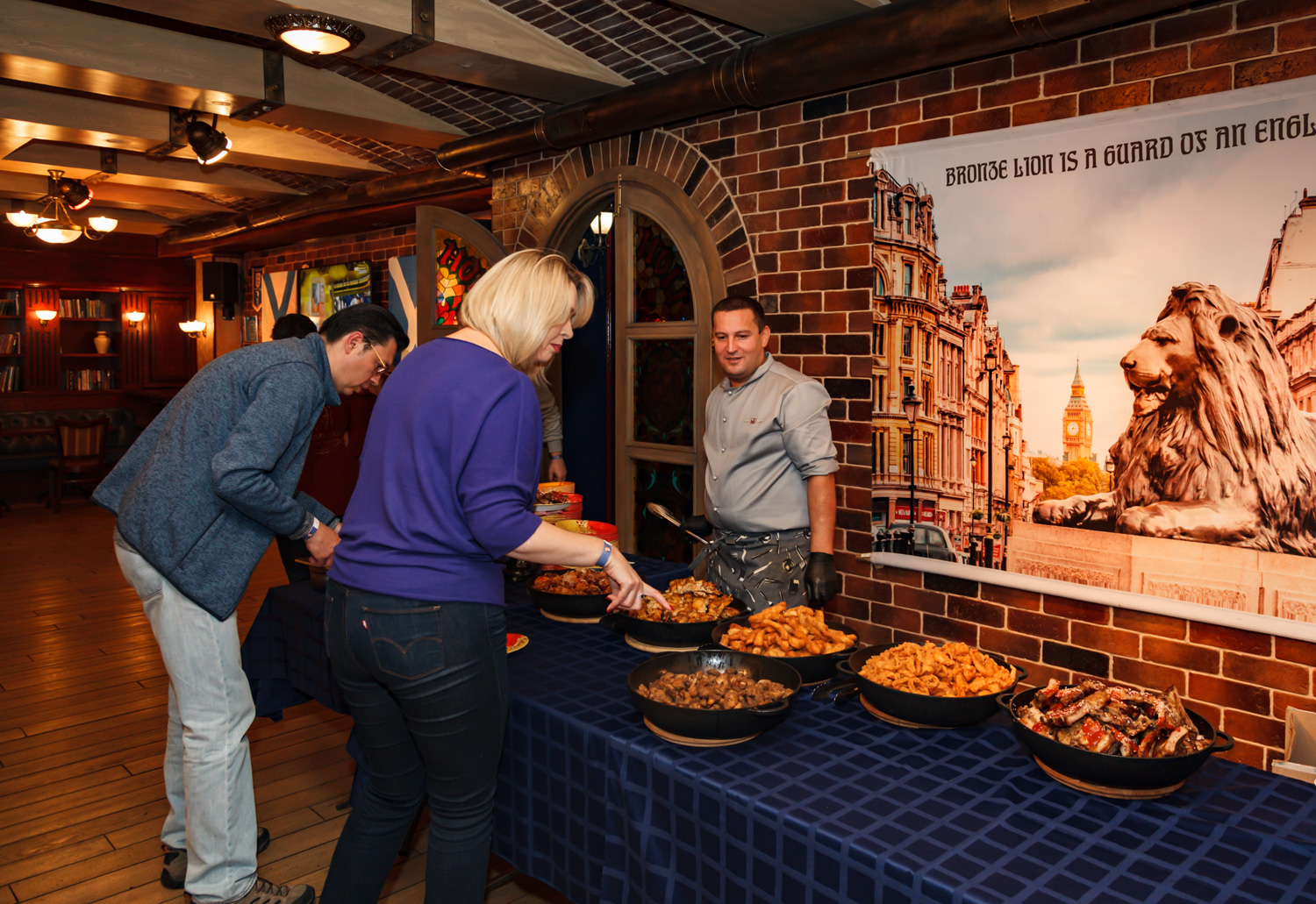 | 30-го ноября и 1-го декабря в Москве, в пабах "Бронзовый Лев" и "The Kings", прошел "Британский Пивной Фестиваль". Посетителям предлагалось отведать британское и российское касковое пиво, причем в первый день - без ограничений. В начале - о пабах. "The Kings" и "Бронзовый Лев" расположены в районе "Царицыно", на Бакинской улице дом 6, в подвале торгового комплекса. Первым открылся "The Kings", затем к нему присоединился "Бронзовый Лев". Интерьеры их сильно различаются, хотя фактически - это один бар. "The Kings" - с интерьером в холодных, стальных тонах, с барной стойкой в виде двухэтажного лондонского автобуса и с городскими видами нарисованными на стенах. Имеется сценическая площадка для живых концертов и отдельный зал отделанный уже в более привычных для английских пабов теплых тонах. "Бронзовый Лев" состоит из одного, но весьма значительного по площади зала, с длинной барной стойкой вдоль одной из стен. Здесь вполне аутентичный интерьер паба - столы, стены и потолок красного дерева, диваны синей кожи. В дальней части зала, стоят бильярдные столы. Пиво - по большей части из Великобритании, но также континентальной Европы и России. Имеются и крепкие алкогольные напитки. Кухня предлагает весьма разнообразные блюда и закуски, по большей части тоже, в английской традиции, но и не только (от бургеров до пиццы и морепродуктов). Цены - вполне умеренные. |