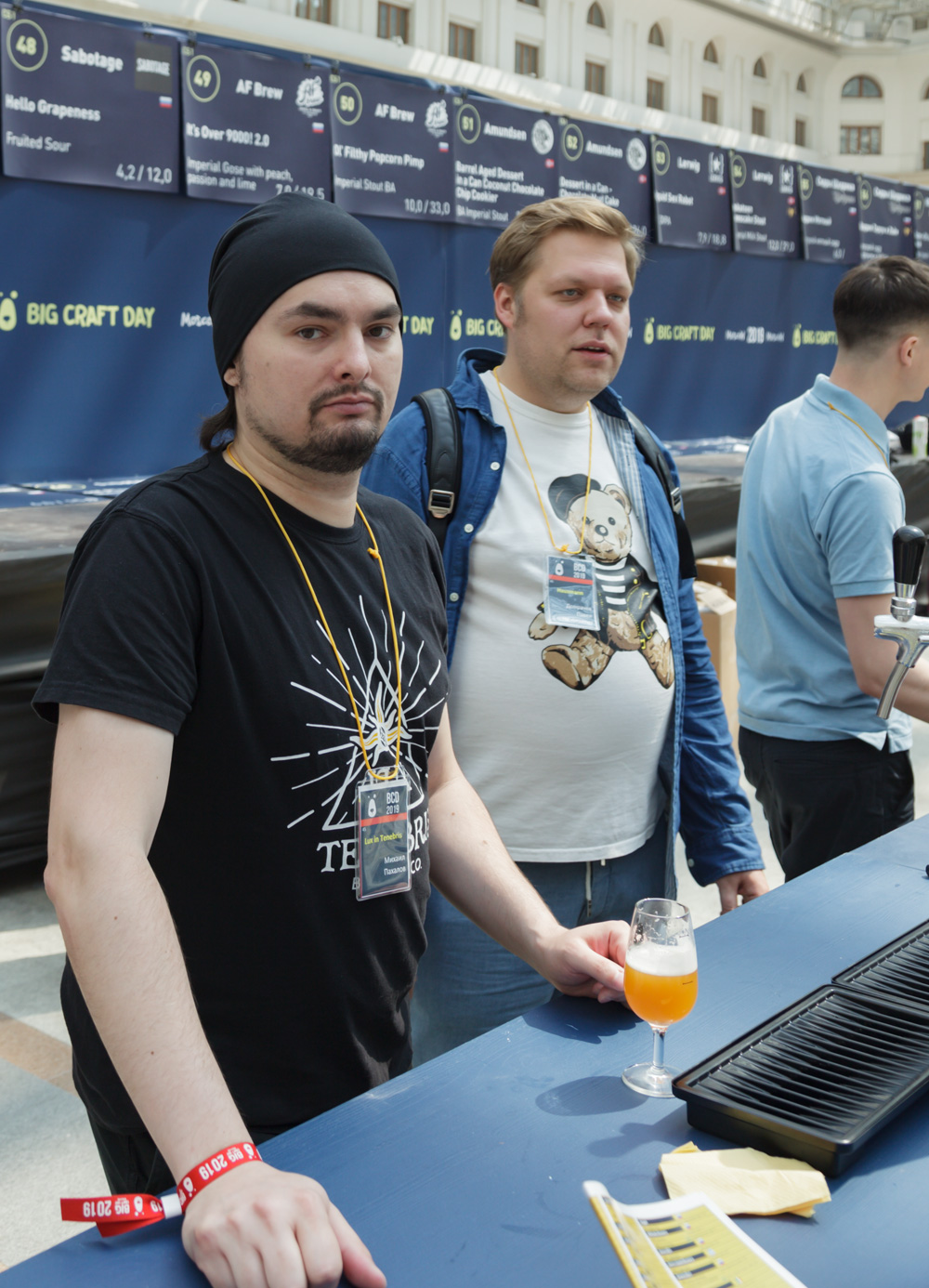 | Хотя много стоял за краном, как ни странно, попробовал довольно много - свыше 40 пивоварен и свыше 60-ти сортов пива. Так что в заключении - очень краткие заметки о питом пиве. De Moersleutel: "Smeerolie Mexicake" (Imperial Stout, 25%, 10%) - во вкусе шоколад и конфетка, а за сладостью - перца не особо видно. CoolHead Brew: "Summer In Vermont" (версия 2019, DIPA, 18,5%, 8%) - яркие тропические фрукты. Courage Brewery: "Имперский Пёс" (Russian imperial stout, 25%, 13%) - шоколадно и молочно. DaLi: "Black Radiation" (Russian imperial stout, Limited Coconut Edition, Wood Series By Cellar Master, BA Macallan 8 М., 29,5%, 13%) - отличный РИС, не сухо, хорошо сбалансированная сладость. "Dilemma" (совместно с Nightingale, Sour Ale, 10%) - во вкусе персик, крепость скрыта, хорошо вышло. FFF BREW: "Pfeffer Symphonie" (Gose, 5,5%) - кислячок, чуток черного перца. Green Street Brewery: "Pioneer Dream" (Berliner weisse, 10%, 3,5%) - в начале дыня, потом ананас. Отлично! Heartly Brewery: "Lorange" (Gose, 17%, 7,5%) - кисло и лимонно. "B-15B" (вымороженный эль, 30%, 17%) - солодовый вкус, алкоголь доведен выморозкой до 17%, но вполне скрыт. HumptyDumpty: "This Is Meadness!" (Dry Mead, 18,5%, 9,5%) - отличный фруктово-ягодный медок, сбалансированный по сладости. LaBEERint Brewery: "True Color" (Barleywine, 29%, 12,5%) - подавался с сухим льдом - прикольно выглядит, но сути не меняет - мощно, винно. "Neutepils" (совместно с Hops Farm Brewery, PinkGumBoots, Vermont IPA, 16%, 6,5%) - вполне яркие хмели - во вкусе тропические фрукты. LERVIG: "TIMES 8" (Imperial Stout, 37,5%, 16%) - кофе с шоколадом, сладко и алкоголь не заметен. Midnight Project: "Крылы Полымя" (с Rewort Brewery, Sour Fruited, 16%, 6,9%) - кисленько, ягодно и освежающе. "Planet TrES-2b" (Russian Imperial Stout, 28%, 12%) - шоколадная конфетка. "Крылы Доблесці" (с Rewort Brewery, Sour Fruited, 16%, 6,9%) - кисленько, фруктово, смородиново. MONYO Brewing Co.: "Hungarian Terroir: Sopron - Blaufränkisch Russian Imperial Stout" (версия 2018, 26,8%, 10,5%) - отличный РИС - все на месте. Nuclear Brewery: "(Mo) Moooolibdenium Pistachio Edition" (Milkshake IPA, 14,5, 7%) - отличная фисташка во вкусе! "(Br) Bromum Brown Ale" (Cola brown ale v 2.0, 13,5%, 6%) - теперь пиво и с вкусом колы... Panzer Brewery: "Акварель Equinox & Amarillo" (American IPA, 16,7%, 6,9% ) - во вкусе и аромате цитрус и тропические фрукты. "Sour Flow (персик)" (Sour Ale, 11,7%, 4,2%) - явный персик во вкусе. Plan B: "T and U" (Dominicana Cocoa Neabs and Madagascar Vanilla Beans, Russian imperial stout, 29,5%, 11,3%) - очень явное кофе, сглаживаемое ванилью. Sabotage: "Pizza Time" (Gose, 15%, 6%) - томатный гозе, но с очень тонким вкусом, без перебора, всего по чуть-чуть. "Lost Planet: Pineapple & Celery" (Fruited Berliner Weisse, 11,5%, 4%) - очень люблю сельдерей, поэтому очень понравилось, пришлось повторить! Vibrant Forest Brewery: "Black Oktober" (Imperial Stout, 20%, 9%) - во вкусе шоколад и кофе - отлично! "Umbral Abyss" (Russian imperial stout, 21%, 11,5%) - яркий кофейный вкус. XP Brew: "Tropical Treat: Passion Fruit & Coconut" (BCD2019 Ed., Sour Ale, 12%, 5%) - кроме цвета (фиолетового) похвалить не за что, чай во вкусе, идет тяжело. Лось и Кедр: "Лось и Кедр Mead. Облепиха с душицей, сухой" (Dry Mead, 7,5%) - умеренно сухо, во вкусе ягоды облепихи. "Лось и Кедр Mead. Брусника с черникой, сухой" (Dry Mead, 7,5%) - медовый вкус с черникой. Alcove: "Ruby Roue" (Melomel, 26%, 15%) - ягодное вино, алкоголь не заметен. Brew Barrel: "Lambicidre" (Lambic Fruit, 17%, 7,5%) - хорошо заметно что поработали бретты - навозик и прочее. Хорошо, но на любителя. "Wild Farmer OAK 1,5 Year" (Saison / Farmhouse Ale, 5,5%) - кисленько, бретты дали немного скотного двора. "Cherry On the Night" (Flanders Oud Bruin, 10,5%) - вишнево, сладковато, алкоголь скрыт. De Struise Brouwers: "Black Damnation XXVI - Froggie" (BA Imperial Stout, 26%, 13%) - мощный шоколад, хотя на заднем плане то, что обычно называют "бинтами". Gueuzerie Tilquin: "Stout Rullquin" (Sour Ale, 19%, 7%) - вкус вполне чистый, похоже на стаут, но с заметной освежающий кислинкой. "Gueuze Tilquin - Draft Version" (Gueuze, 14%, 5,3%) - яркий навозик, как на скотном дворе в Бельгии побывал... Mad Scientist: "Cookie Monster" (Imperial Stout, 25%, 18,5%) - довольно суховатый, но шоколадный. Oka River: "De Kuiper Roesela