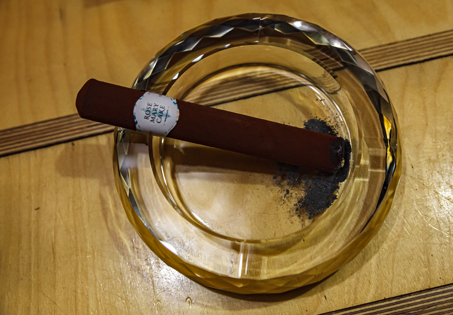 | Гвоздь программы - Сигара с копченой вишней (сигара конечно не из табака - а из темного шоколада с начинкой), подается в пепельнице, присыпается черной сахарной пудрой имитирующей пепел и даже поджигается! Под сигару были поданы два портера - "Baltic porter" от Knightberg и "Durak" от Jaws. Оба портера были великолепны - отличный вкус темных, карамельных солодов и он отлично сочетался с вкусом шоколадного десерта. Кстати, все десерты были лишь умеренно сладкими, что конечно правильно для подачи к пиву. В целом - десерты под определенные сорта крафтового пива - дело конечно очень интересное, хотя я сторонник более серьезных мясных кушаний, но завершать вечер бокальчиком крафтового пива под такое лакомство - очень хорошо! Спасибо организаторам сего мероприятия за приятно проведенный вечер! |