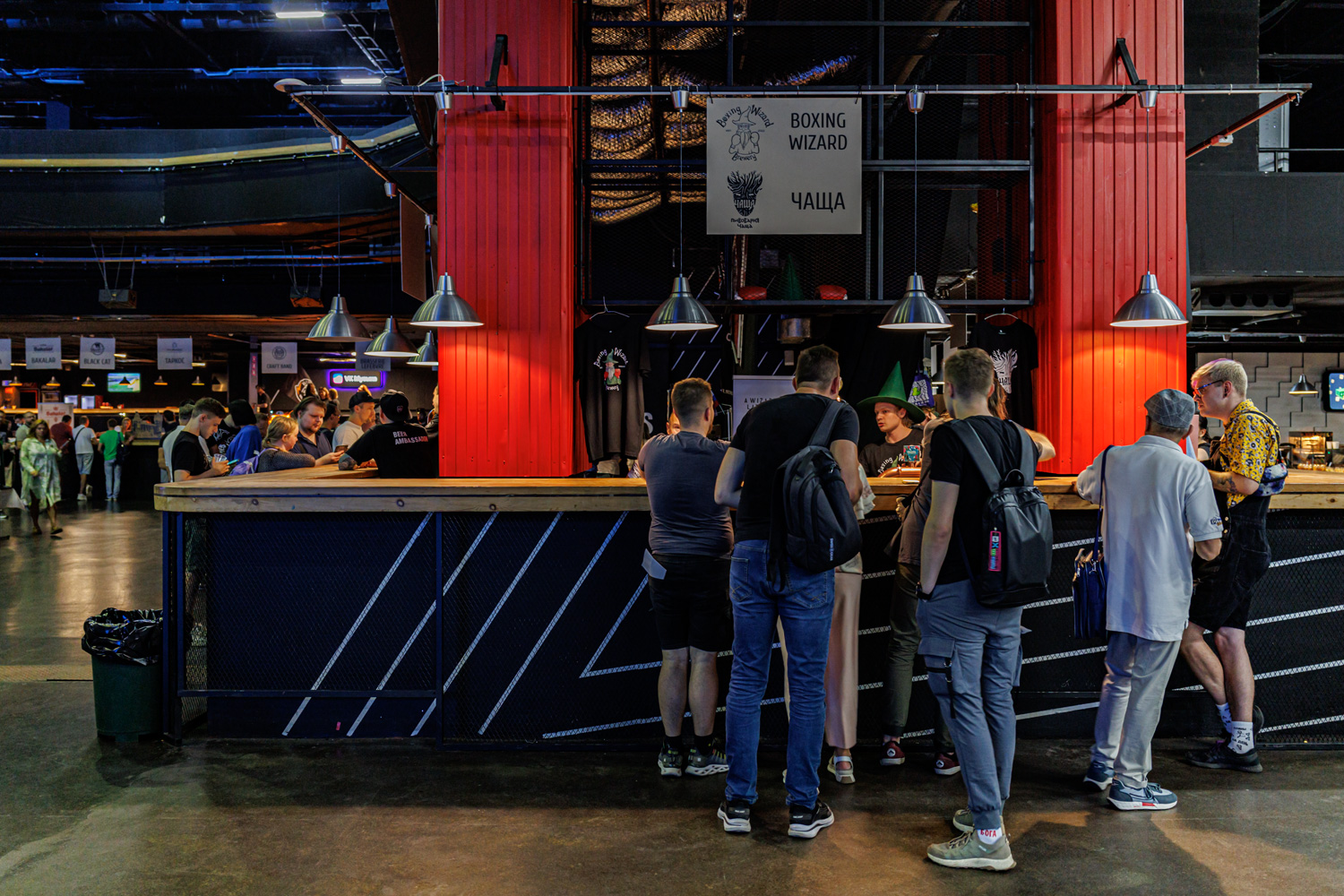 27 июня, прошел летний Craft Depot fest. Проводился он в помещении, на концертной площадке VK Stadium, что на Ленинградском проспекте у станции метро Сокол. Формат был безлимитный, билет стоил 4000 р., можно было купить и куда как более дорогие, тогда в подарок шли всяческие ништяки и предоставлялась возможность сыграть в пивное казино (коих было целых два!), а также поучаствовать в других развлечениях типа настольного хоккея и бирпонга. Как театр начинается с вешалки, так пивные фестивали - начинаются с очереди. По традиции, пускать стали минут на десять позже официального времени начала и народу скопилось не мало. И конечно, хорошо иметь многих друзей в пивной тусовке, удалось пристроиться почти в самую голову очереди, хотя пропускать стали довольно шустро (и это, при весьма серьезных мерах охраны).
