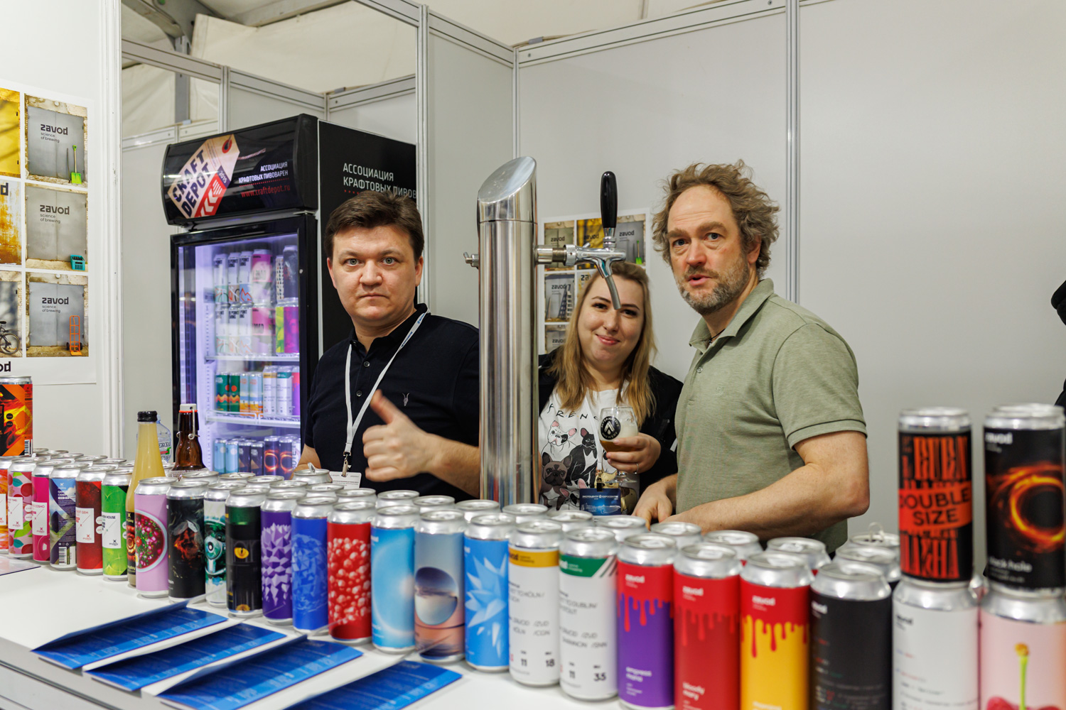 | Теперь павильон №8. "Мэйджор агро" (Московская область) - современный агропромышленный холдинг, объединивший под одним брендом 11 предприятий по производству продуктов питания. Зерновые и бобовые культуры, мясо и молоко, хлеб, яблоки, вино, пиво. Из пива было: Major Brewery, "Дзен" - лагер с добавлением красного риса. Получился янтарный цвет, чистый, ровный, солодовый вкус. "Grape Ale Syrah Qvevri" - вкус красного вина, но при этом легче и менее алкогольный чем вино. Чисто, также не заметны проявления дикого брожения в квеври (глиняных кувшинах закопанных в землю). |