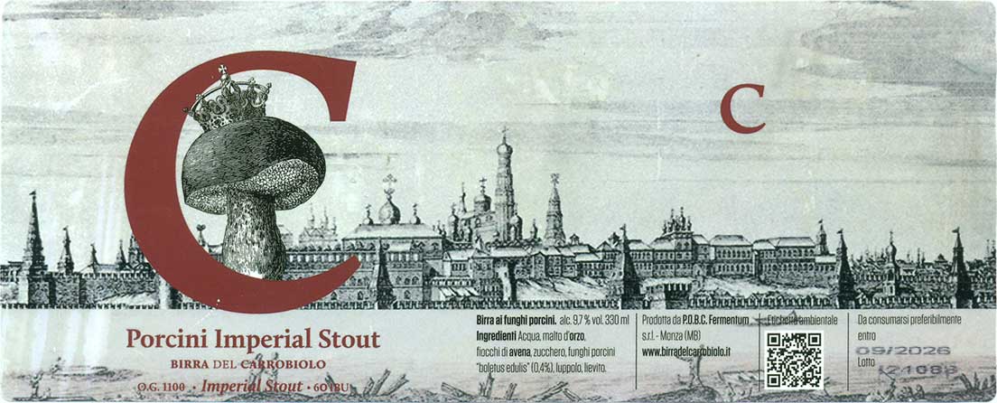 Birra del Carrobiolo, "Porcini Imperial Stout" (Stout - Imperial / Double - с белыми грибами, 10% алкоголя) - аромат очень грибной, правда пахнет не белыми грибами, а скорее поганками. Во вкусе грибов меньше, но они ощутимы, не давят, а создают некую изюминку. В остальном ощутимы темные и карамельные солода, алкоголь скрыт. "O.G. 1111" (Winter Warmer, 26% на 13% алкоголя, 77 ibu) - ощущается копченый вкус - прежде всего копченая груша хотя есть и слегка горелой резины. Высокая, но скрытая крепость, потому заметно и вино. Довольно сложно и интересно. |