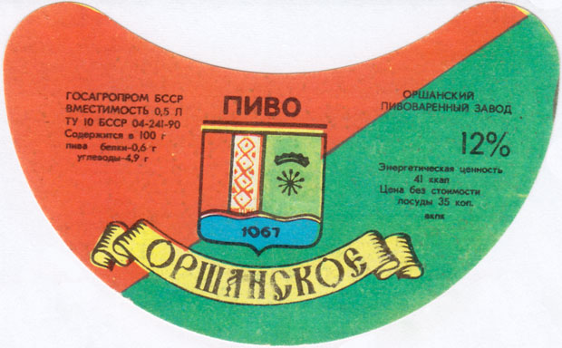 Цветность: Плотность: 12% Крепость: Вкус: Цена: 35 к. ГОСТы: ТУ 10 БССР 04-241-90 Рецептура: Производители: Оршанский ПЗ Период производства: с 1990-х г. Примечания: сорт Оршанского ПЗ.